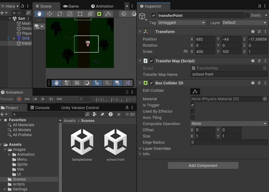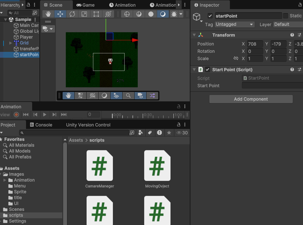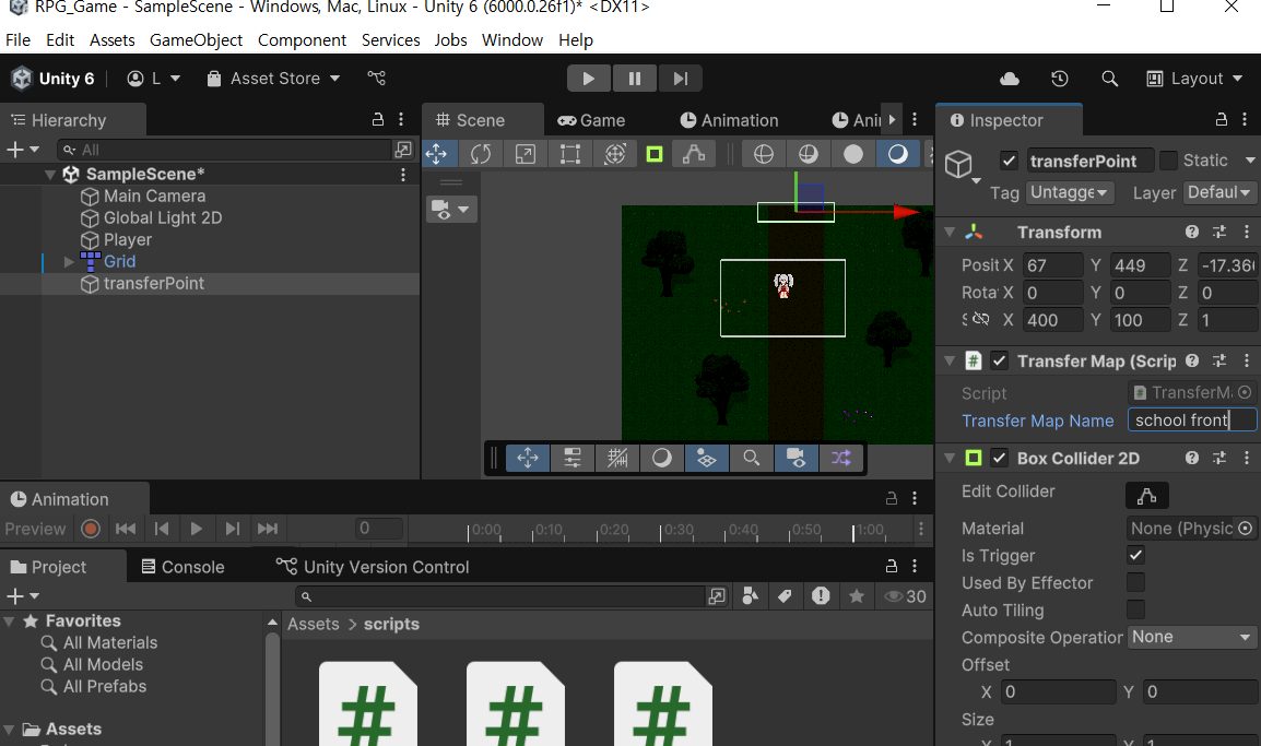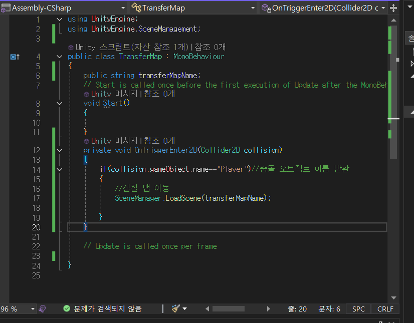 맵간 이동을 위한 스크립트를 하나 생성한다.