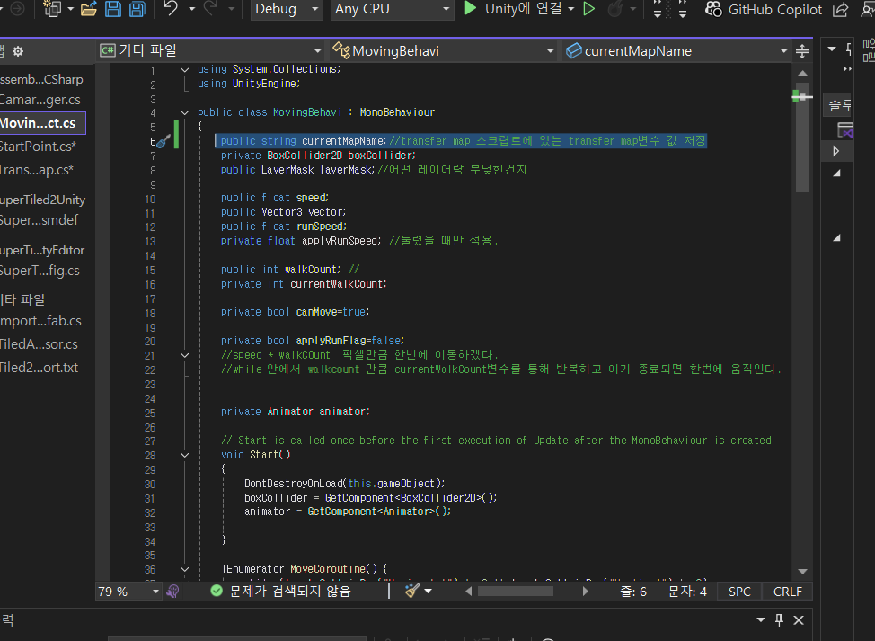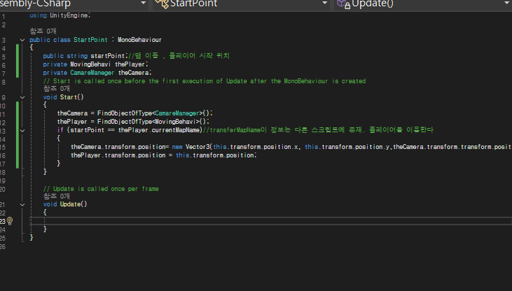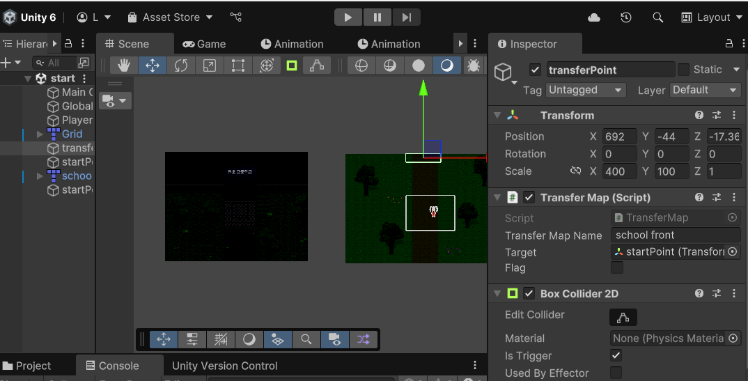 그런데 씬 전환이 이뤄질때 캐릭터의 좌표가 그대로 옮겨진다.