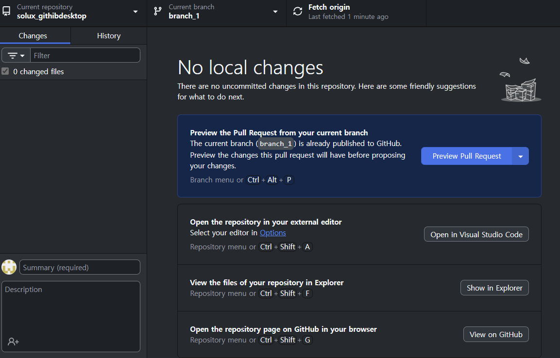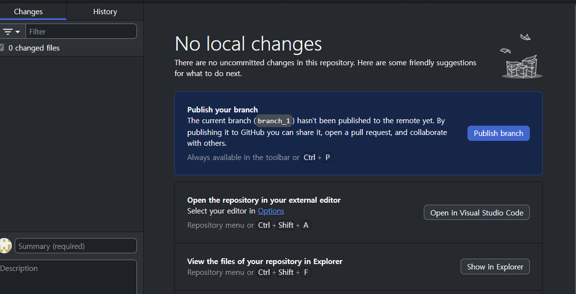 브랜치 생성 이후 publisg branch 버튼으로 생성 가능