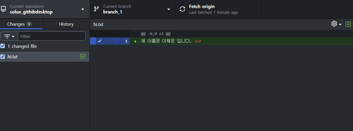 이후 branch_1에서 brach_2가 변경한 사항을 확인할 수 있다.