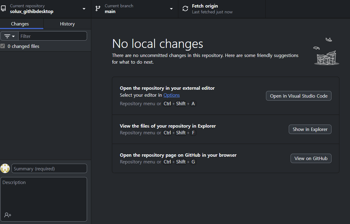 메인 브랜치에서 패치 오리진 버튼을 눌러 로컬에 원격 저장소의 내용을 반영해준다