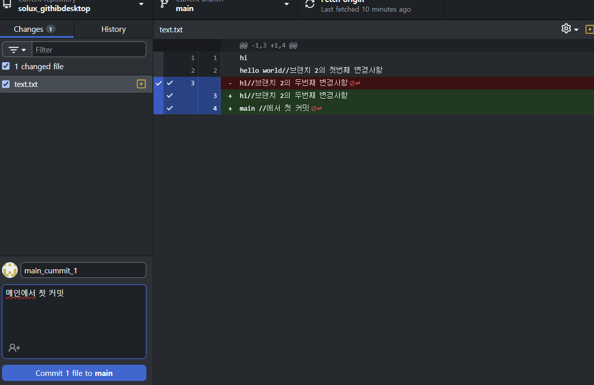 원격 저장소에도 이를 저장하려면 git push origin main명령으를 꼭 같이 사용해줘야한다.