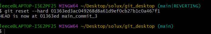 해당 커밋의 위치로 이동하고 기록을 없앰