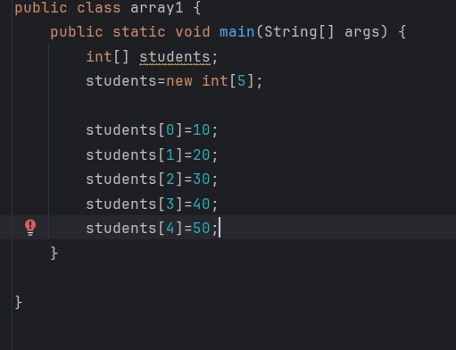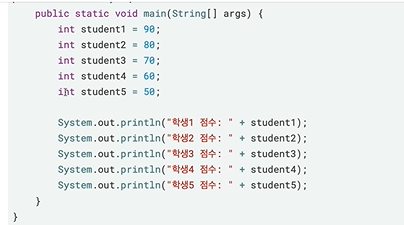 더욱 최적화시킨다면 int[] student={10,20,30,40,50} 의 형식으로도 입력 가능하다.